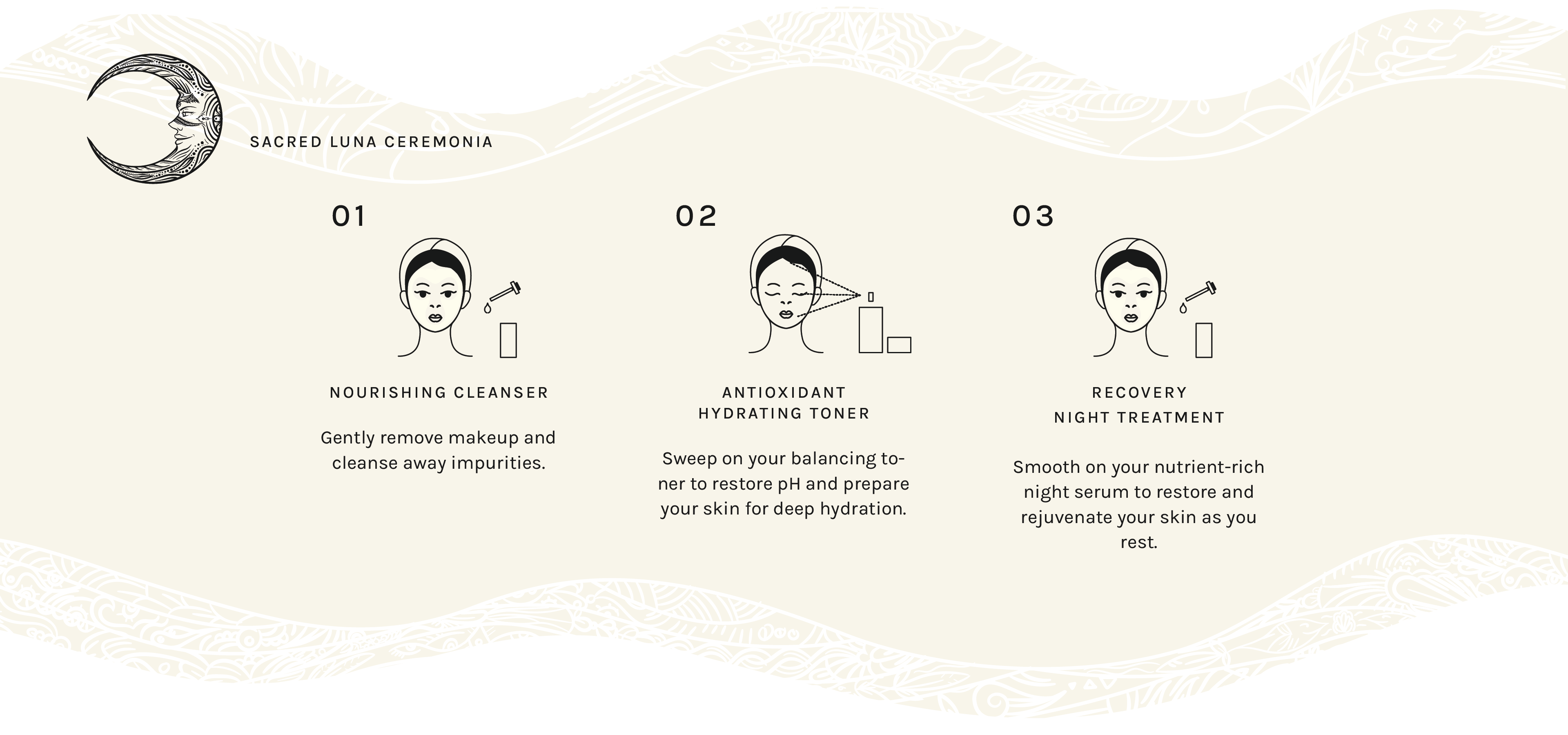 The Ki’olal Sacred Luna Ceremonia Skincare Set is a soothing, night-focused ritual that harnesses the calming and restorative energy of the moon.